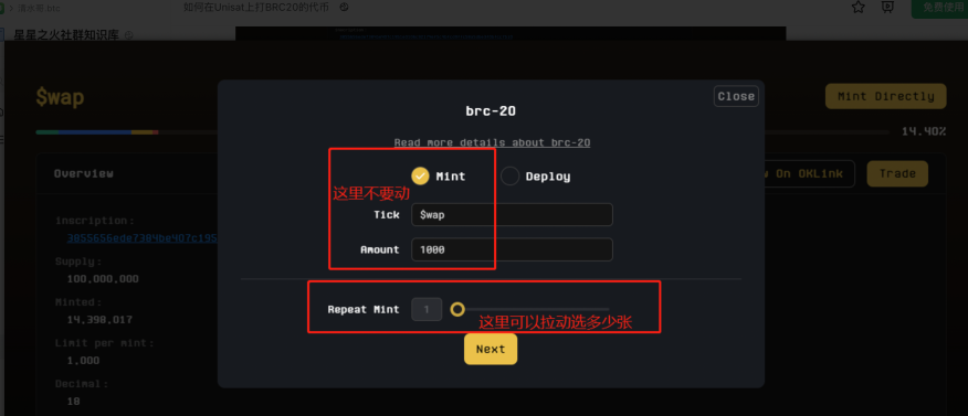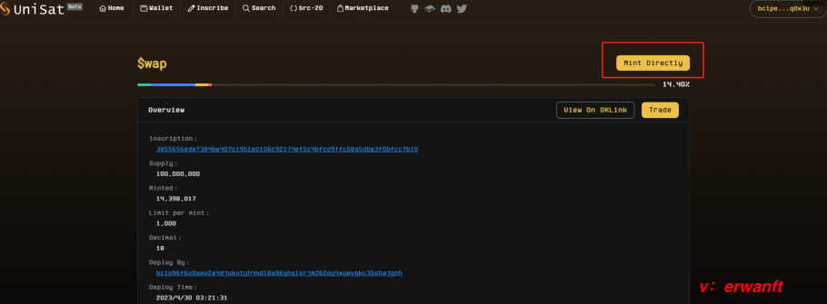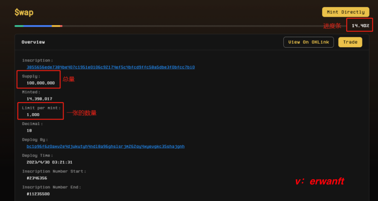 这个$wap一张有1000枚币,总量有100000000 ,如下图: