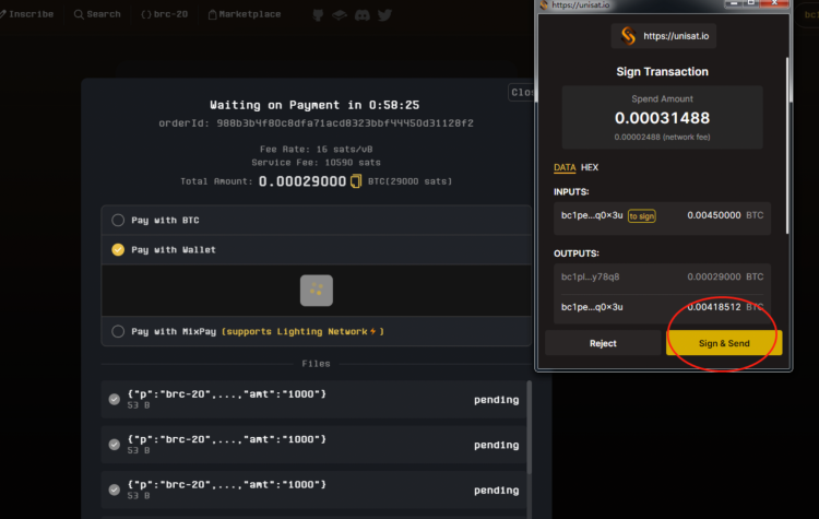 确定好没问题之后点submit&pay invoice---选择pay with wallet---钱包弹出签名点sign&send即可
