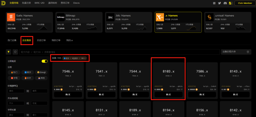 同时在正在售卖那里,选择4位数的纯数字,也能看到8103.X,如图: