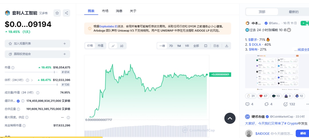 比如 $aidoge 火了,马上出来一些比如 $aishib 之类,网站什么都可能没有,一个代码就让人冲,这种风险极高——明摆着是蹭别人家赶工出来的,你胡乱打钱这就送人头。