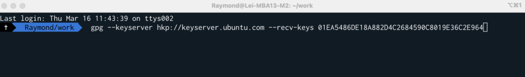 gpg --keyserver hkp://keyserver.ubuntu.com --recv-keys 01EA5486DE18A882D4C2684590C8019E36C2E964