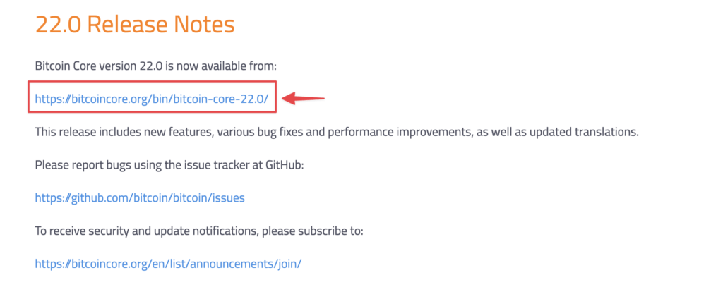 前往https://bitcoin.org/en/download ,找到你刚才下载的安装包的版本,这里以 Bitcoin Core 22.0 举例。根据下方图示,找到 SHA256SUMS 文件并并载。这个文件里就包含了当前版本所有平台的 SHA256 签名信息。