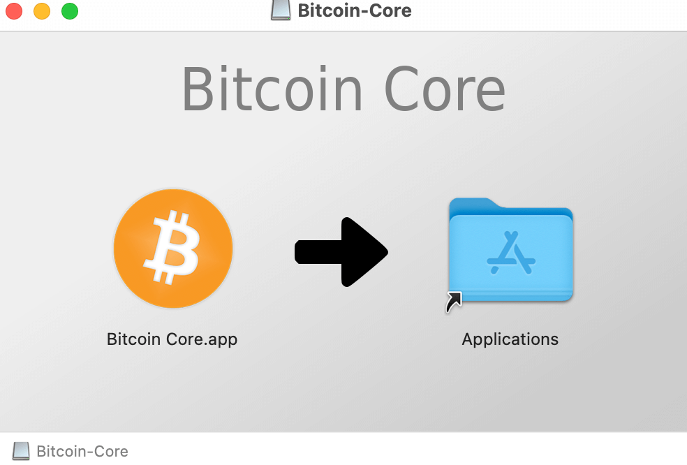 ●打开下载好的 DMG 安装包,将 Bitcoin Core 程序拖拽到你的应用程序文件夹中。