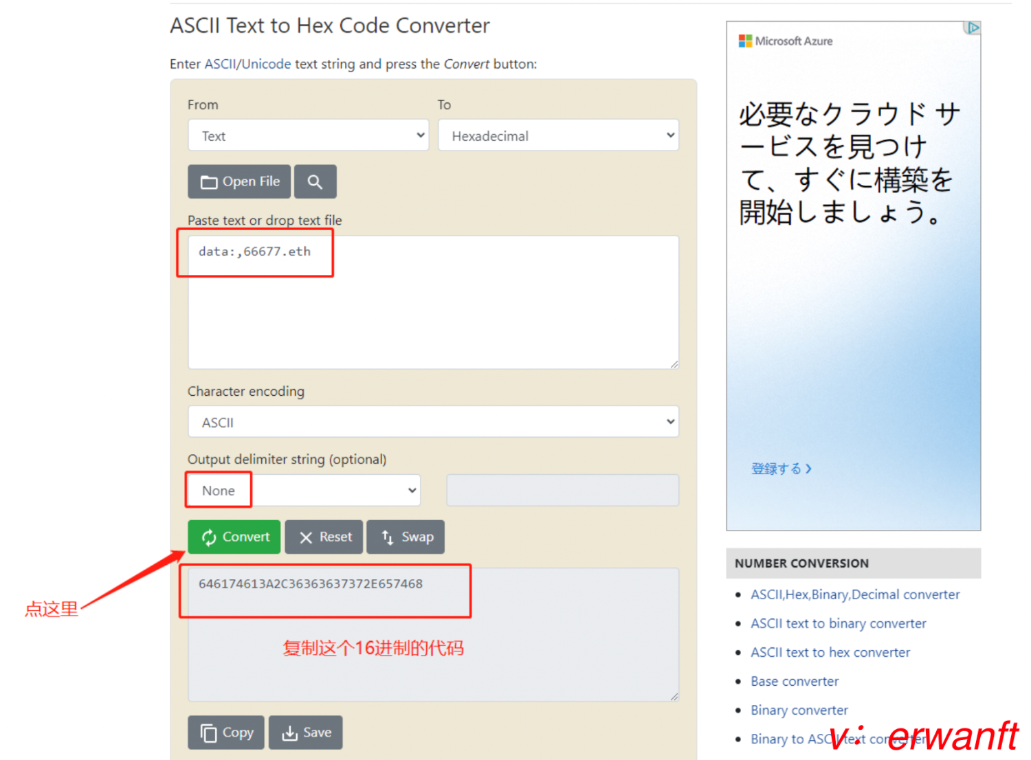 确认没有被打过后,打开这个网址:https://www.rapidtables.com/convert/number/ascii-to-hex.html
