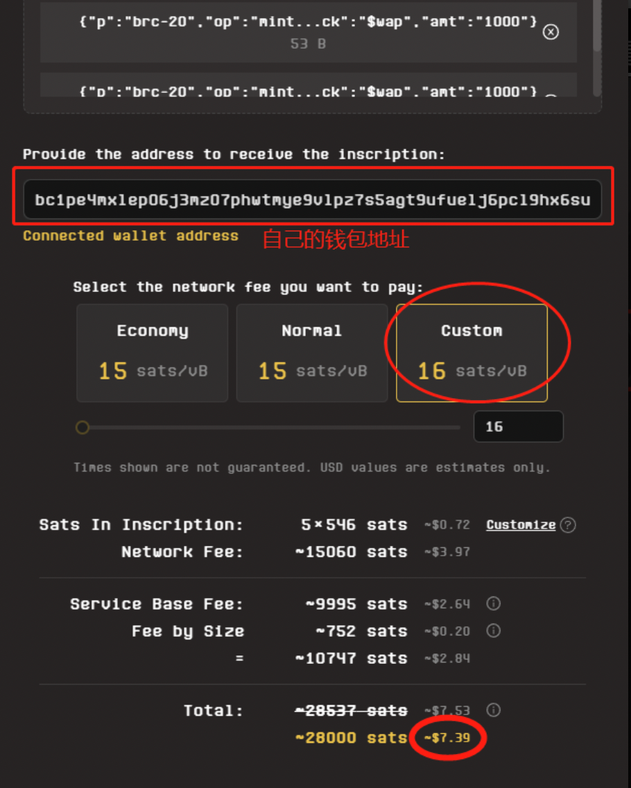 注:Gas一般选最高Custom,现在是16,如果遇到很火的项目,就需要把Gas拉得很高。如果很火的项目,Gas拉得不够高,就抢不到,这样就会亏本。现在最高Gas16,而且$wap这个币不火,目前进度才到15%,所以我们不需要拉Gas,选最高级差不多了。