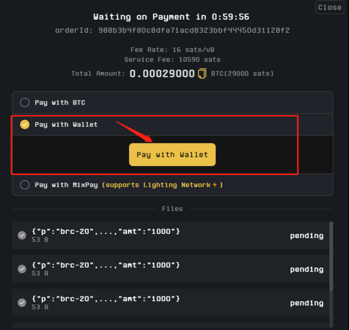 确定好没问题之后点submit&pay invoice---选择pay with wallet---钱包弹出签名点sign&send即可